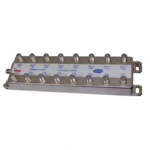 16 way “F” type splitter. Power pass one port. Insertion loss -14dB @ 500MHz.